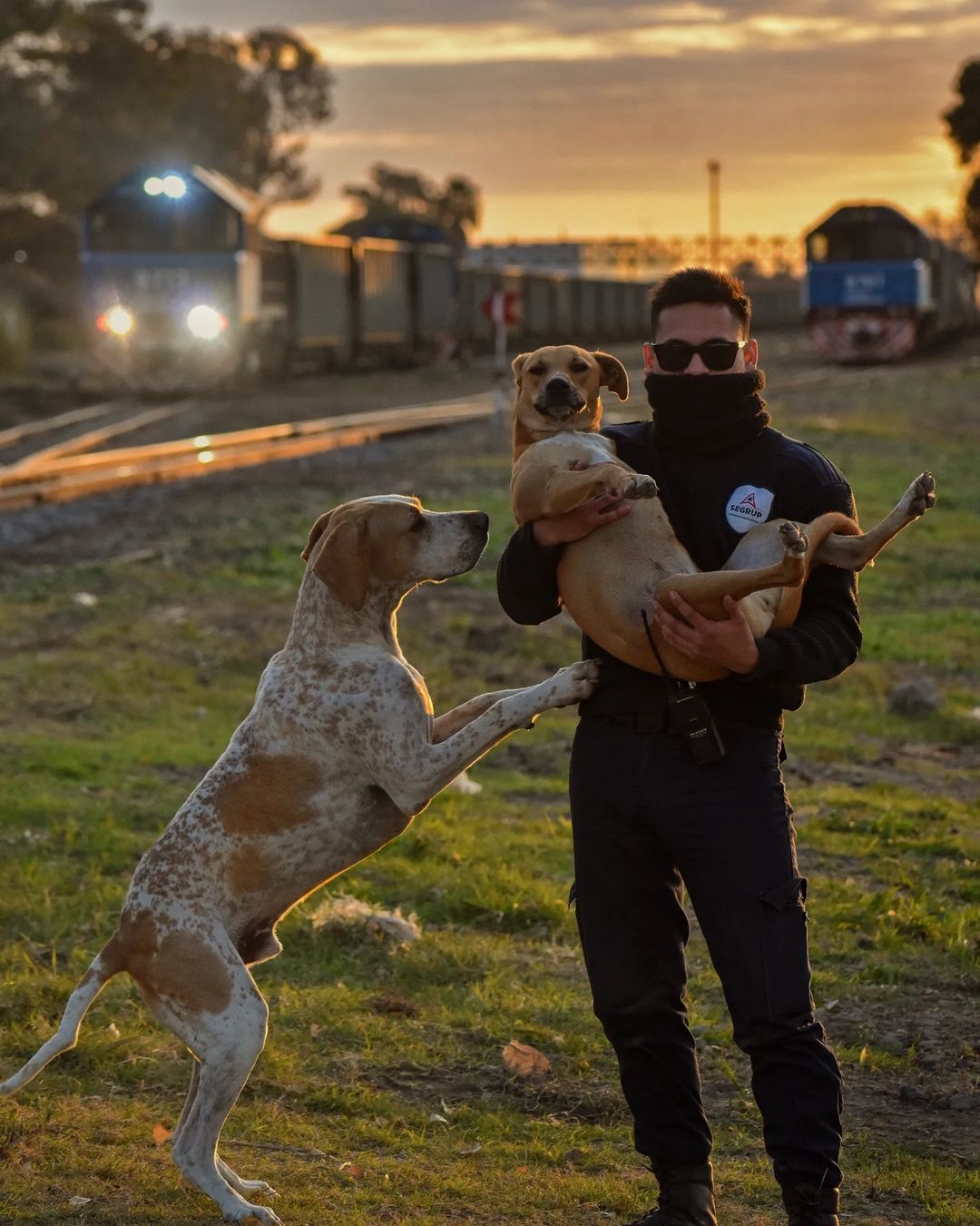 Los perros son tan cuidadores como los hombres que trabajan en el lugar. «Ellos van con nosotros a esperar el tren, nos acompañan en los recorridos. También nos cuidan a nosotros porque por las noches estamos solos pero ellos son educados, nunca mordieron a nadie», contó el joven.