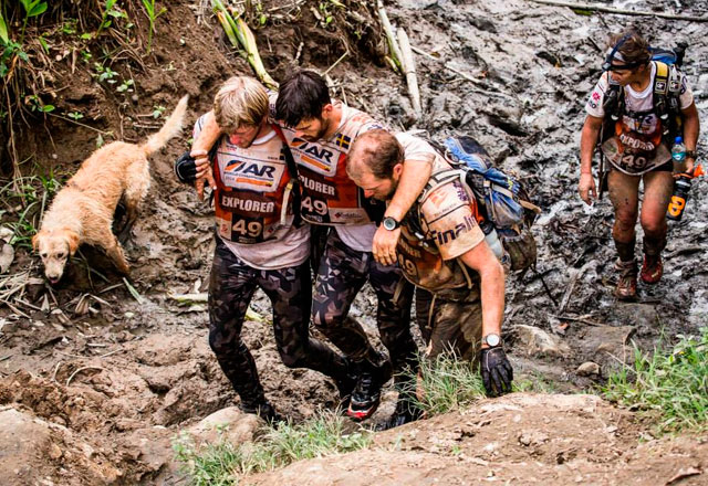 El grupo notó que un perro de aspecto cansado merodeaba a su alrededor. Sintiendo lástima por él, Mikael le dio una albóndiga en un acto de bondad. Eso creo un vínculo inquebrantable entre el hombre y el perro durante el resto de la agotadora carrera. A partir de ese momento el perro se negó a dejar de lado a Mikael, nadando junto al equipo mientras se desplazaban por los ríos, arrastrándose cuesta arriba y tirándose por zonas donde el barro llegaba hasta las rodillas.