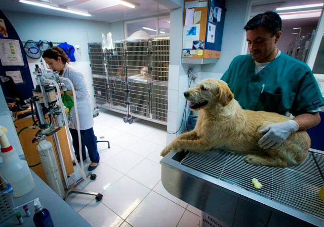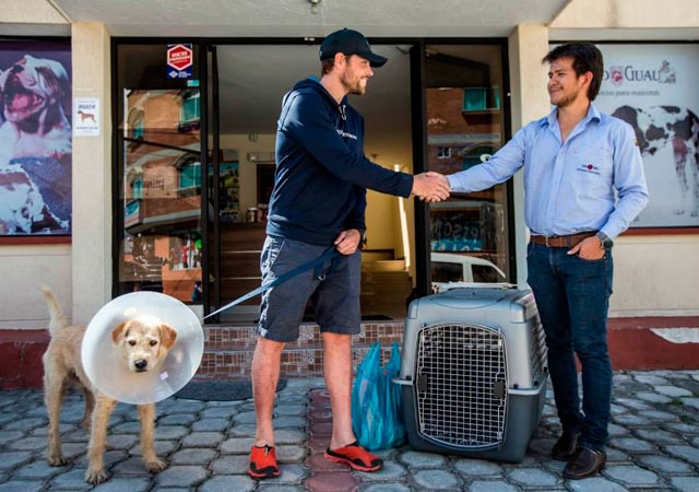 Después de ser examinado por un veterinario en Quito (Ecuador), el veterinario le cosió varias heridas y le suministró antibióticos.