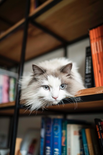 “René es el dueño de la casa y nos deja vivir con él. Es muy sociable y demandante de mimos. A diferencia de otros gatos, él se acuesta a dormir en la cama en el momento que nos acostamos nosotros, y se levanta cuando nos levantamos. Y siempre que vea a alguien en el sillón, se va a acostar encima.”