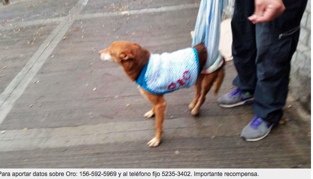 El pasado 11 de noviembre, Oro, un perro mestizo de contextura mediana, color marrón y discapacitado, desapareció luego de que dos delincuentes robaran en Caballito el auto en el que su cuidador lo trasladaba para una nueva sesión de fisioterapia. Horas más tarde el vehículo apareció en Avellaneda, cerca de la cancha de Racing, pero sin el animal.