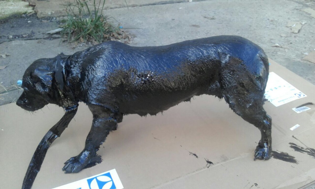 El lunes por la tarde Miguel salió de su casa a comprar con un amigo hasta que se cruzó con algo que no esperaba. Ahí estaba Petro, un perro bañado en brea, casi inmóvil. “Lo primero que pensé fue lavarlo, pero el agua endurecía aún más la brea” expresó el joven de 17 años. Inmediatamente pidió ayuda a la policía que lo traslado a un centro de zoonosis de Lanús. Allí lo recibieron los voluntarios que durante más de cinco trabajaron para quitarle el material que cubría su pelaje.