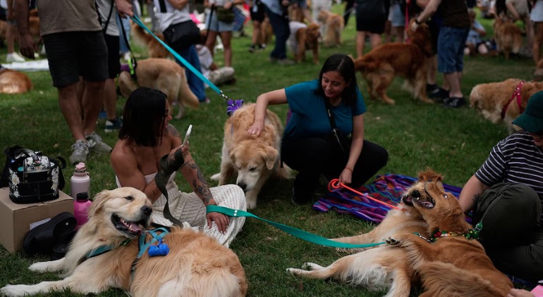 La denominada “ola dorada”, cómo fue promocionado el encuentro en redes sociales, pretendía reunir 2.500 perros Golden Retriver en la Plaza Berlín, en los Bosques de Palermo. La juntada, además, estuvo acompañada de una iniciativa para juntar donaciones de alimento balanceado.