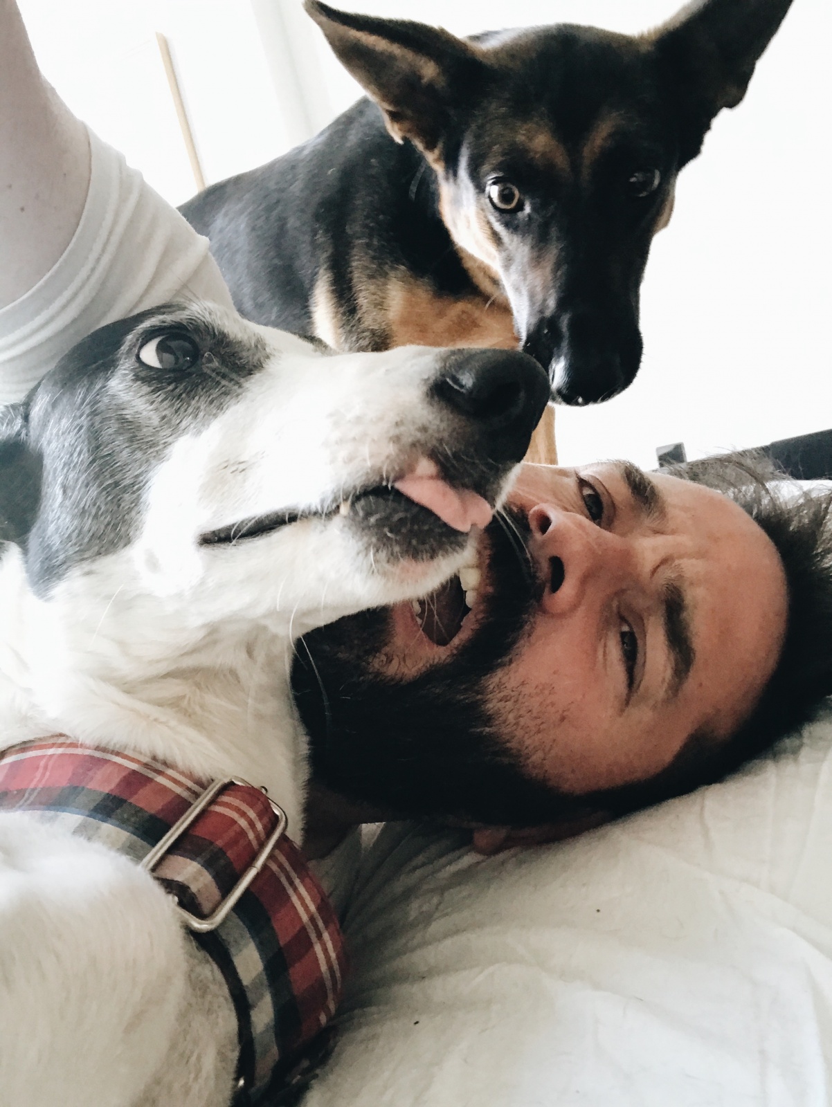 Todo lo contrario es lo que le pasa a German Belis, el salteño detrás de la cuenta el @elpibedelosperros que convive con la negra Cata y el galgo Rayo. En plena cuarentena rescató al Negro y lo tiene en tránsito hasta que pueda conseguirle un hogar. “En mi caso, me pegó mal al principio ante la incertidumbre, me generó ansiedad sobre cómo volveríamos a la normalidad y que nos depararía el futuro frente a la economía paralizada tanto tiempo. Ahora si bien tengo más claro el panorama y enfrento nuevas oportunidades, estoy bastante agobiado por el encierro y extrañando muchos a mis amigos y familia. En cuanto a la manada, se nota el recorte de paseos y falta de parque. Intento compensarlo jugando mucho con lo que tenemos en casa o simplemente haciendo ‘bed-office’ todos juntos. Incluso sumamos un cuarto miembro transitoriamente (¿o permanente? ¿quién sabe?): El Negro. Lo encontramos en la esquina después de verlo por el barrio un día antes. Sin dudarlo mucho lo rescaté y ya le hicimos todos los controles. Tiene 9 años y muchos de ellos en la calle, por lo que aprovecho este contexto para devolverle el amor que no tuvo y darle una vejez digna, como corresponde.