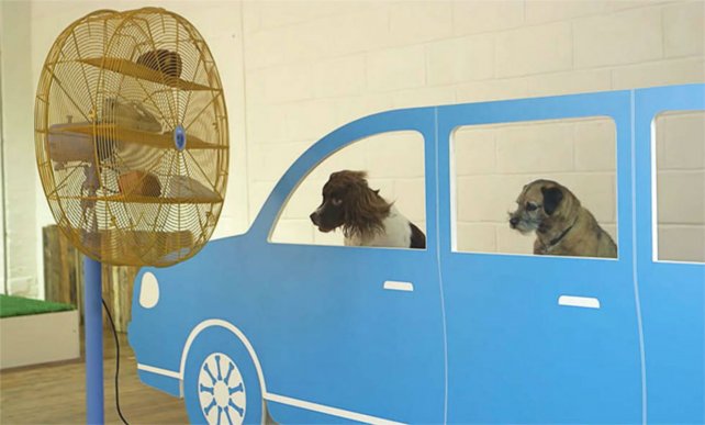 «Play more» (juega más) es la primera exhibición de arte diseñada para perros, del artista Dominic Wilcox que fue inaugurada en Londres la semana pasada. La muestra también incluyó pinturas y, a pesar de la visión en blanco y negro de los canes, los asistentes se mostraron entretenidos ante las obras. Una alberca de pelotas inflables con la forma de un gran platón de croquetas, una pantalla que simula un frisbee, una ventana de auto abierta para simular un viaje en carretera, todo lo que tu mascota amará.